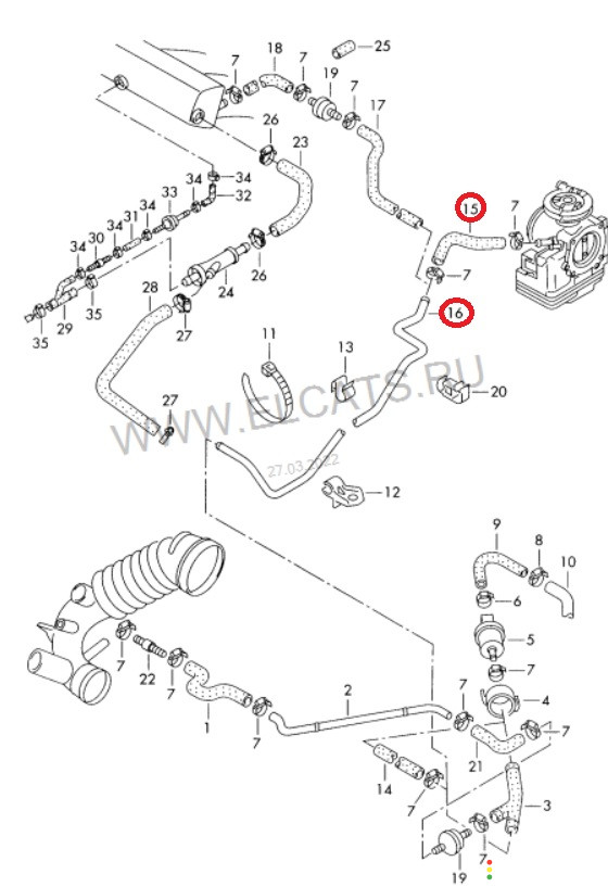 Трубка воздушная Volkswagen Passat B5 3B2 1996-2001 МКПП, 050133787 | 16526