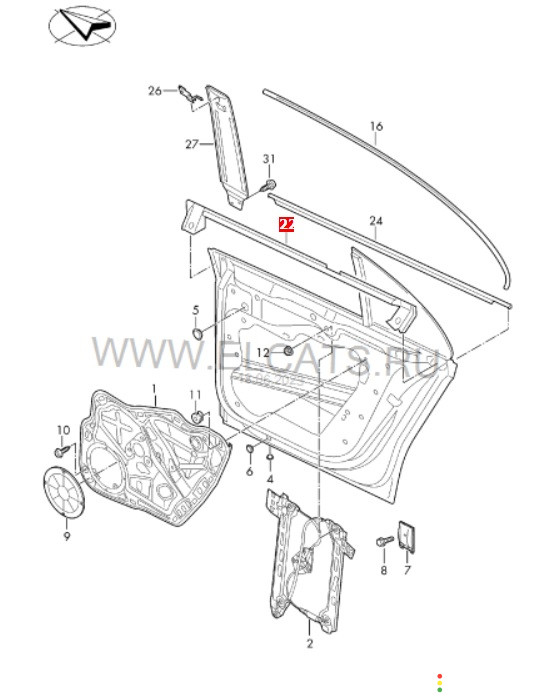 Уплотнитель стекла двери задний правый Volkswagen Passat CC 358 2012-2017, 3C8839472C | 21275