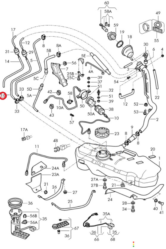 Трубка вентиляции топливного бака Volkswagen Pointer 2003-2008 МКПП, 5X0201995B | 24448
