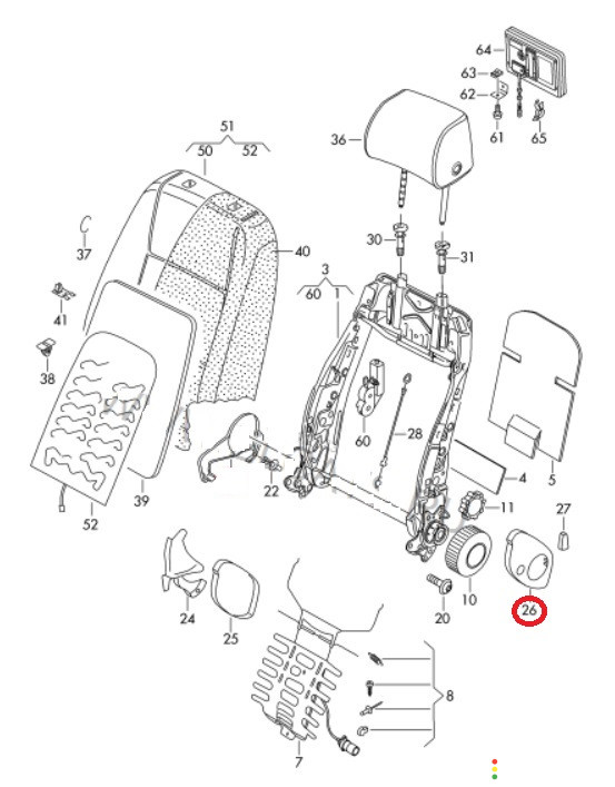 По запросу пришлём видеообзор запчасти! \nПравая для левого сиденья.\nКолпачок для каркаса сиденья с регулировкой по высоте.\n\nПрименяется: VW Passat [B6] 2005-2010\nVW Golf Plus 2005-2014\nVW Golf V 2006-2009 \nVW Golf VI 2009-2013\nVW Jetta 2006-2011\n\nУ нас есть видеообзор товара, предоставим по запросу. \nВ разборе Passat B6 (Пассат Б6), Седан, 1.8, МКПП, г.в. \n\n Контрактный, без пробега по РФ!\n\nЗвоните, спрашивайте то, что Вас интересует.\n\n— На все запчасти есть гарантия!\n— Работае...