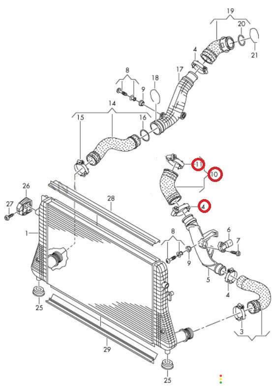 Напорный патрубок от патрубка интеркулера к дроссельной заслонке.\n1.8- 2.0 BZB, CCTB, CCTA, CAWB, CBFA, CCZA, CCZB, CDAB, CDAA и др.\nВ комплекте с хомутами.\n\nПрименяется: Audi A3 [8P1] 2003-2013 Audi A3 [8PA] Sportback 2004-2013 Audi TT(8J) 2006-2015 Seat Altea 2004-2015 Skoda Octavia (A5 1Z-) 2004-2013 Skoda Superb 2008-2015 Skoda Yeti 2009-2018 VW Golf VI 2009-2013 VW Passat [B6] 2005-2010 VW Passat [B7] 2011-2015 VW Passat CC 2008-2017 VW Scirocco 2008-2017 VW Tiguan 2007-2011 VW Tiguan 2...