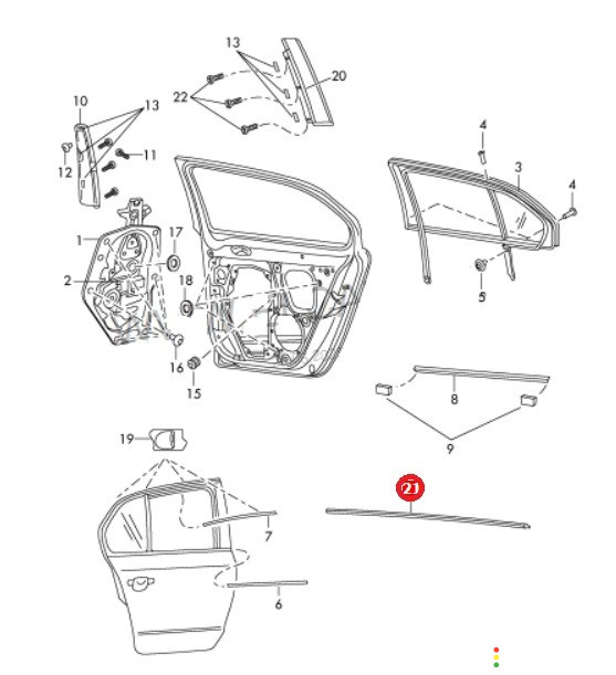 Молдинг стекла двери задний левый Skoda Superb 3T5 2008-2013, 3T9839475 | 27957