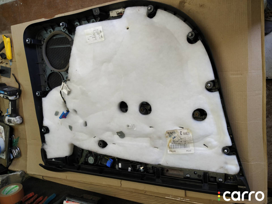голая, отдельно: черная рамка и вставка под дерево 7P6867440B, ручка 7P6837114 , световозвращатель 1K0947411A, проводка 7P6971121D, кнопка центрального замка 7P6962126A, шуба 7P0863979, ВЧ динамик 7P6035412, подлокотник 7P1867166 с кнопкой стеклоподьемника