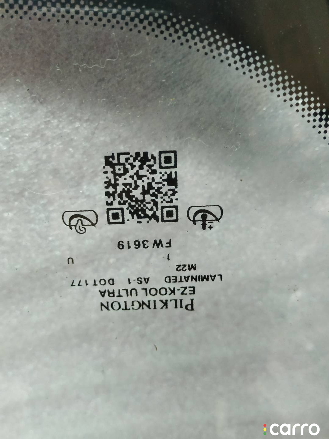 лобовое (ветровое) без подогрева Pilkington (Англия) AS-1, есть "звездочка" в верхней части стекла (на фото)
