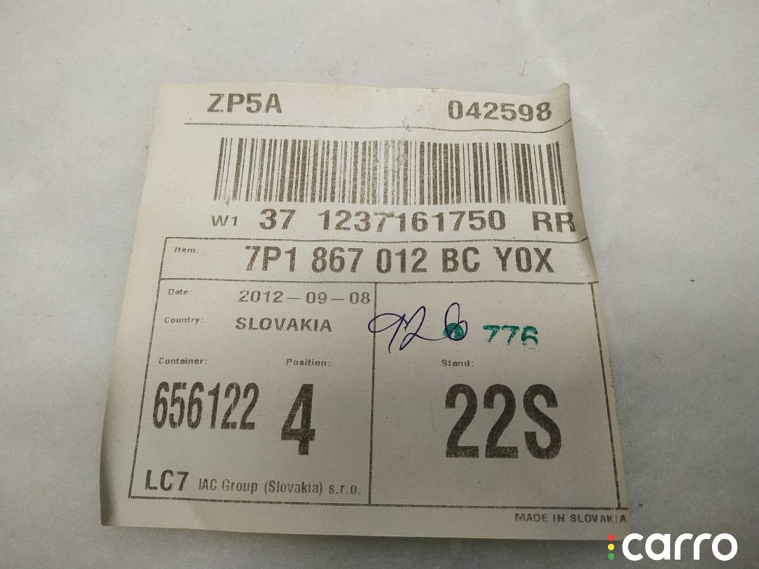 | Ориг. номера | 7P1867012BC |