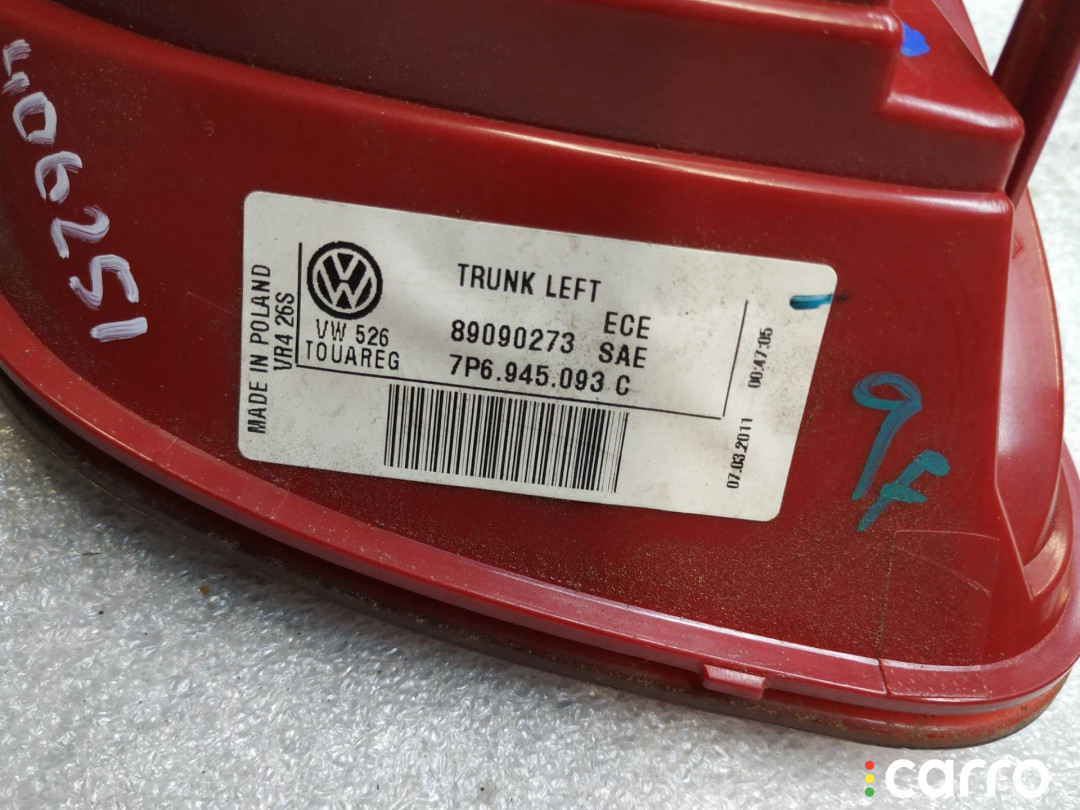Фонарь задний левый Volkswagen Touareg 2 поколение 2010-2014 3.6 л. CGRA, 7P6945093C | 406251