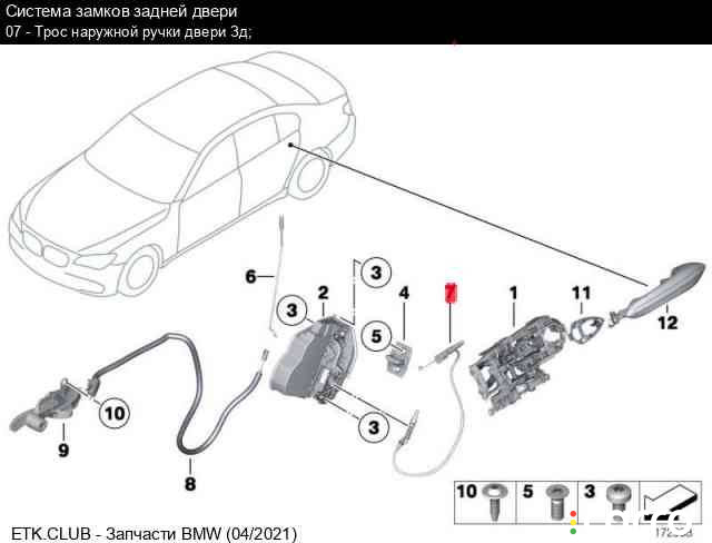Тросик наружной ручки двери передней правой BMW 5 F10/F11 [рестайлинг] 2013-2017 2.0 л. N20B20A, 51217297439 | A006-29/33-4