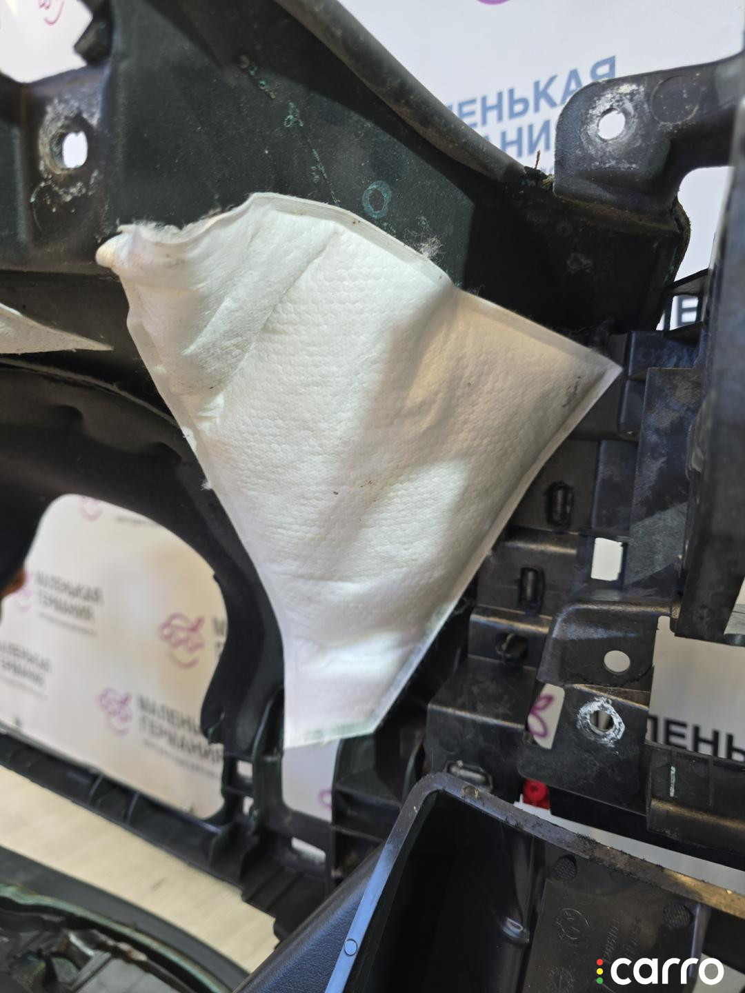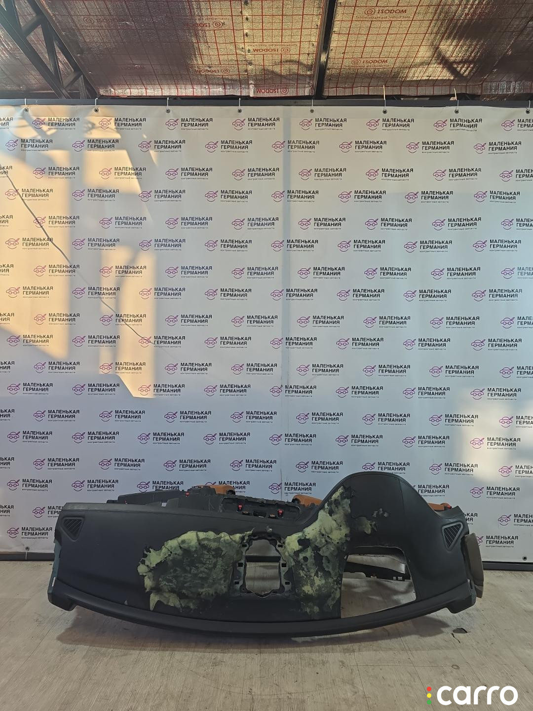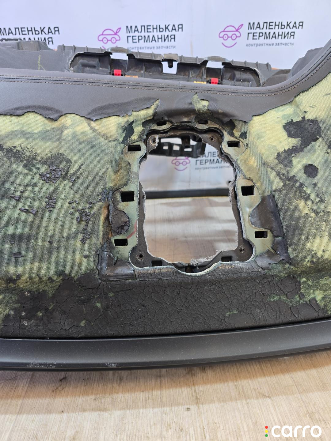 Есть дефект- повреждение кожи, трещина на каркасе в районе магнитолы.