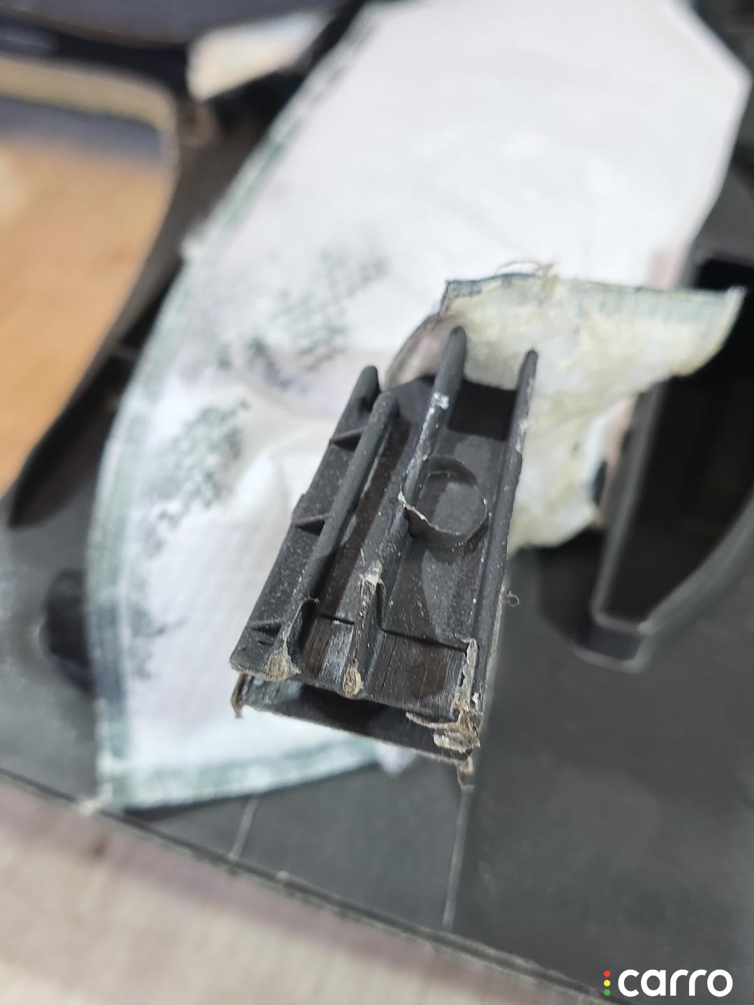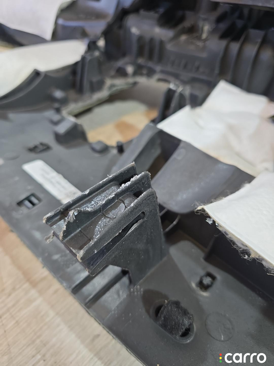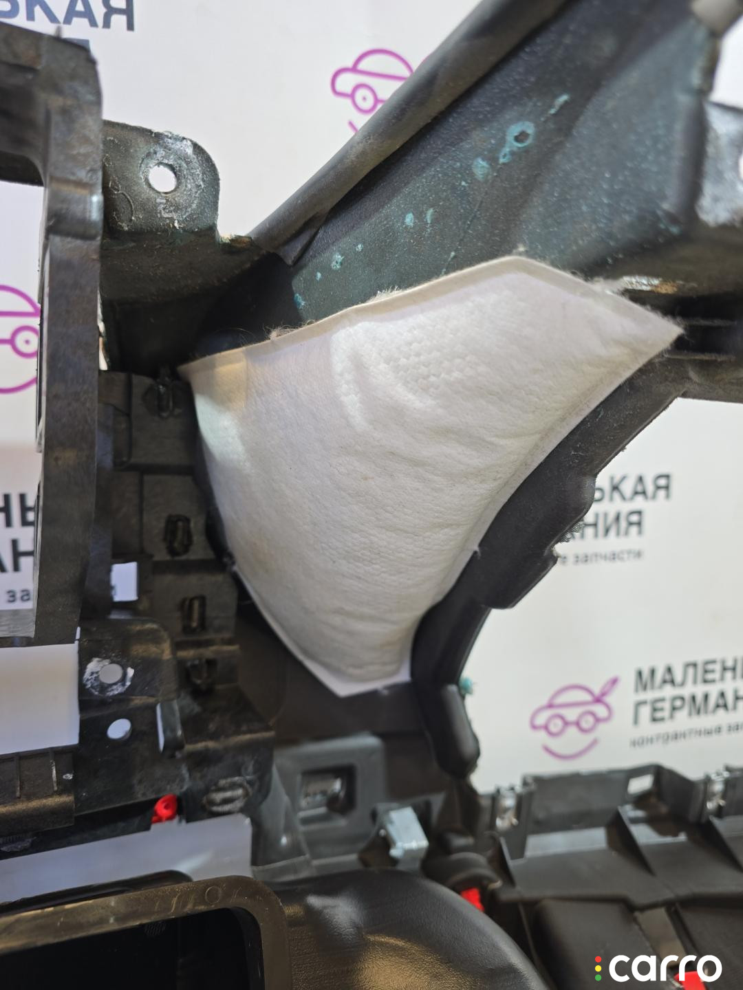 Есть дефект- повреждение кожи, трещина на каркасе в районе магнитолы.