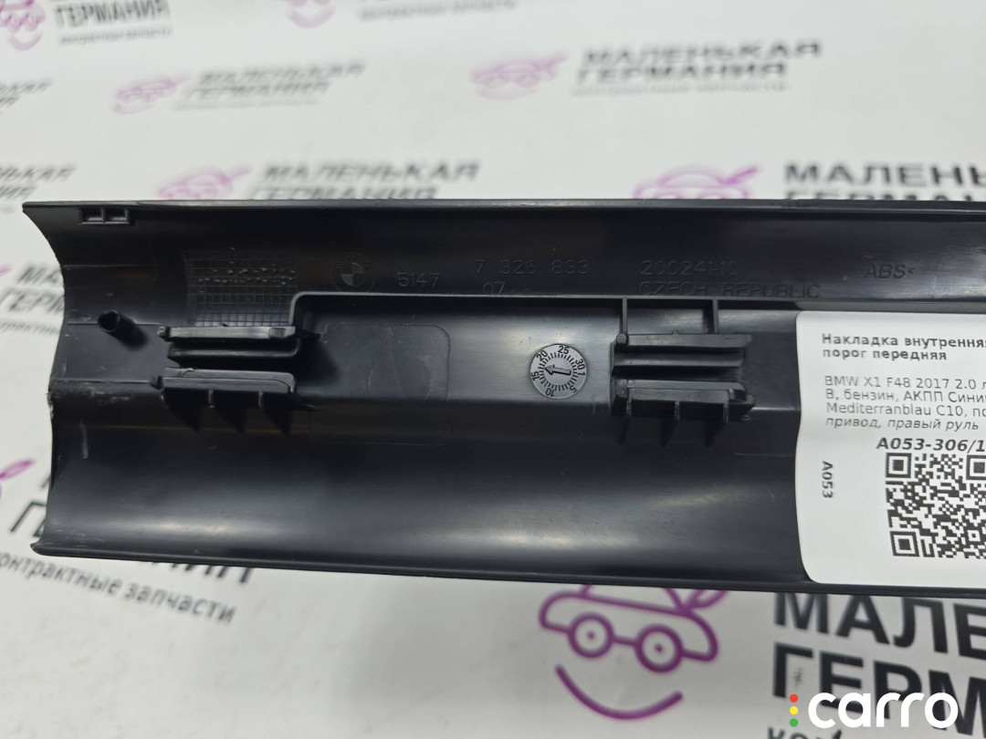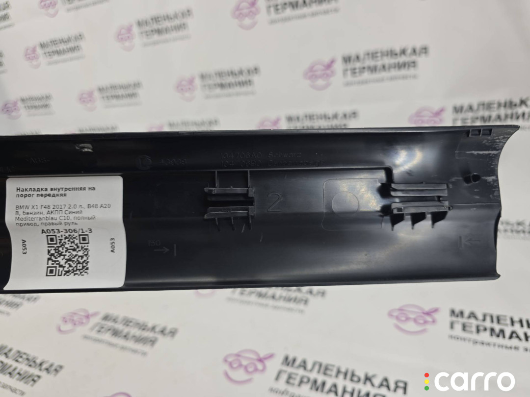Накладка внутренняя на порог передняя BMW X1 F48 2015-2019 2.0 л. B48A20B, 51477326833 | А053-306/1-3