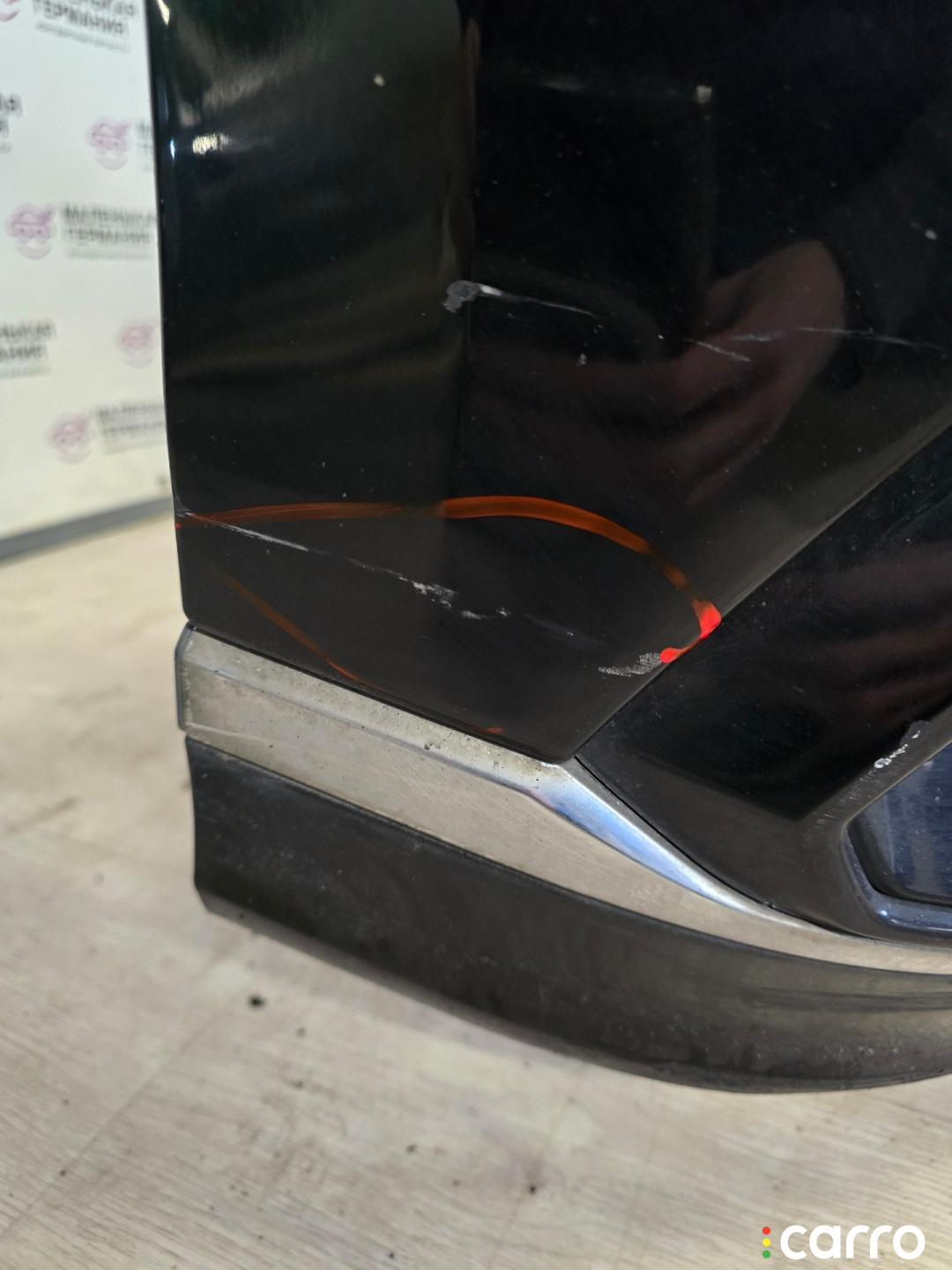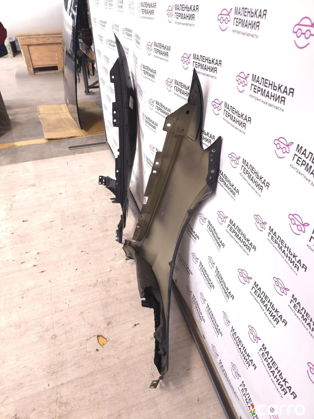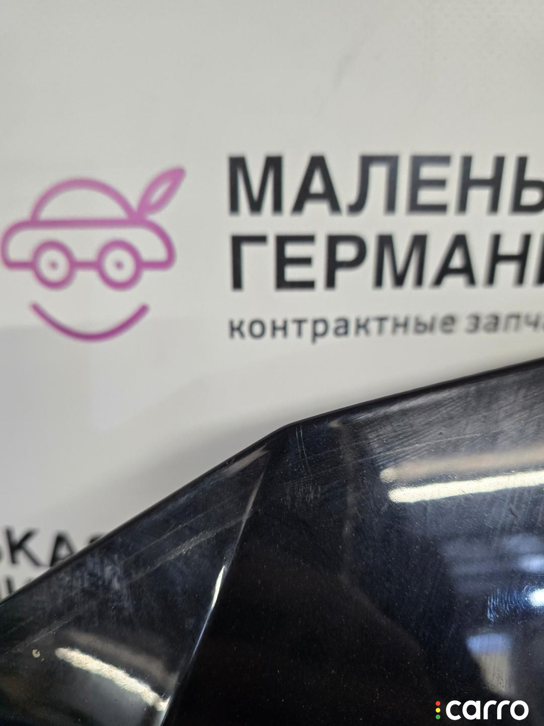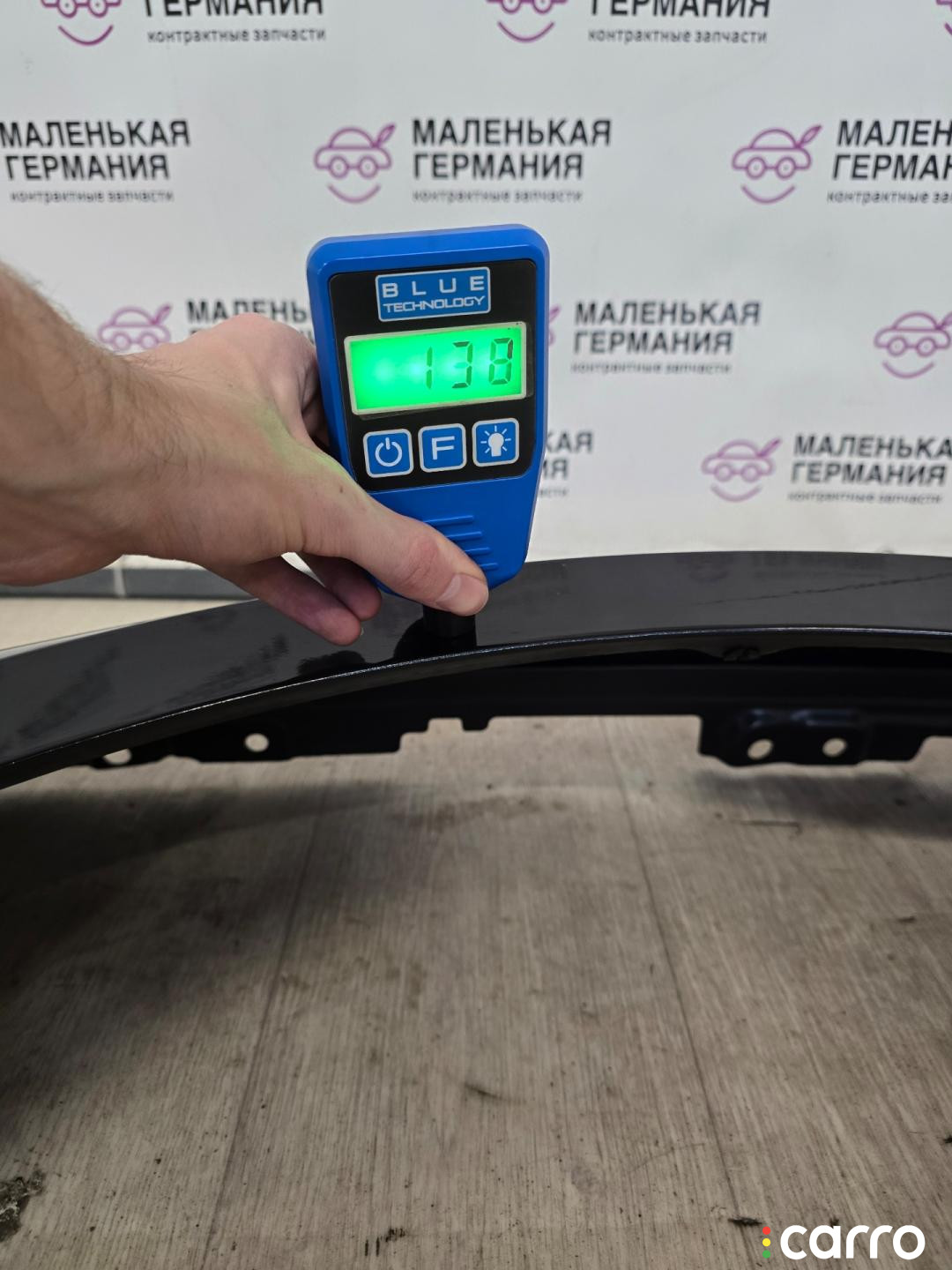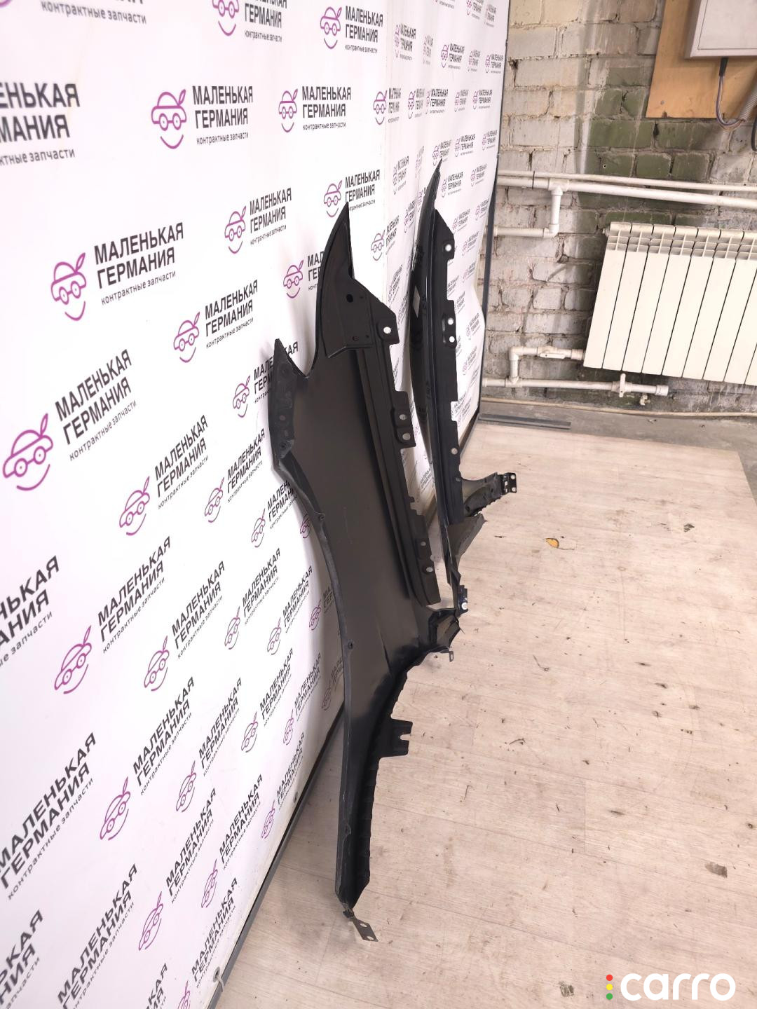 Бампер передний, оригинал. Есть дефект- повреждено крепление решетки радиатора, правое крепление к крылу, эмблема, присутствуют небольшая вмятина, царапины, мелкие сколы.