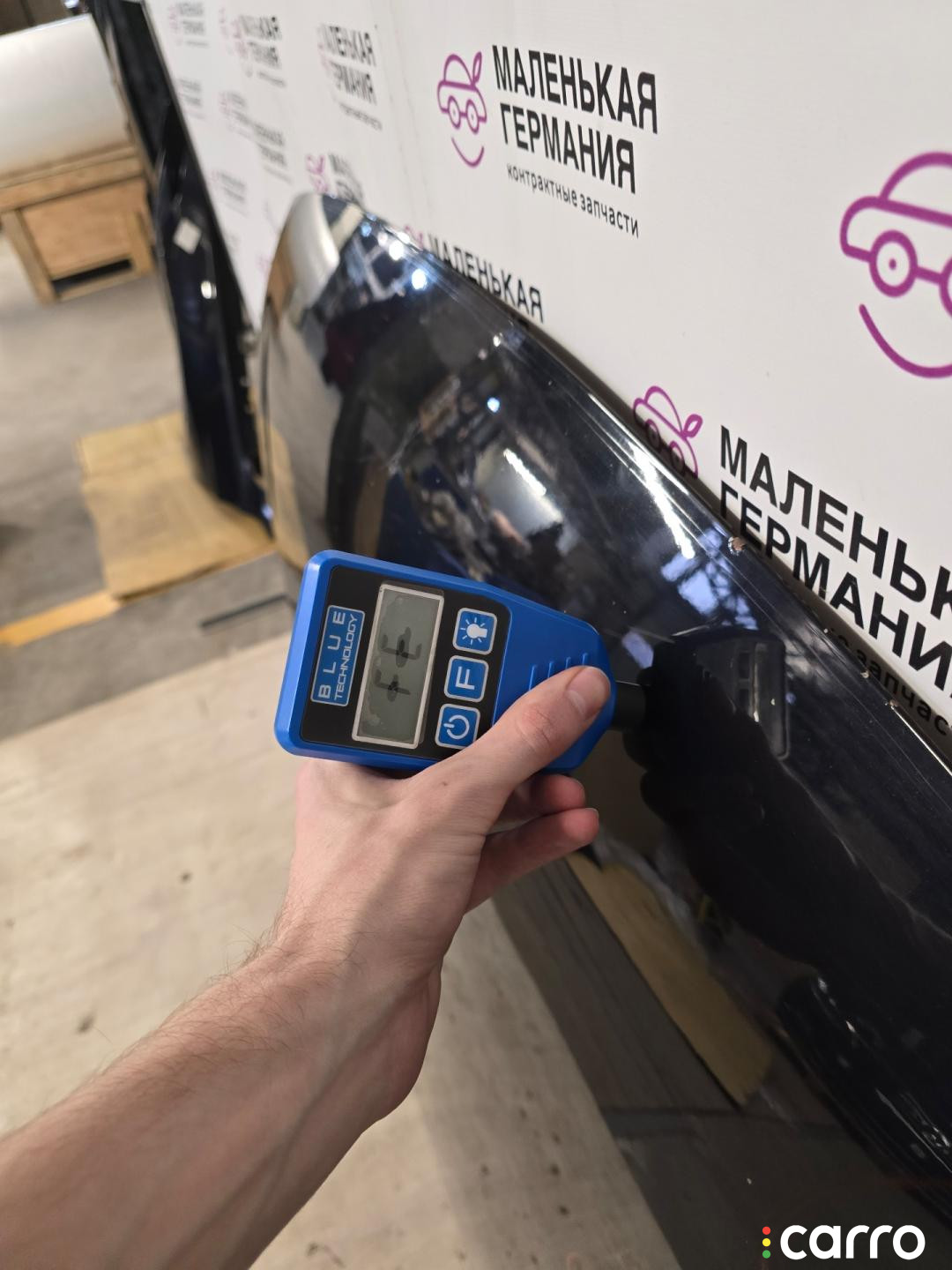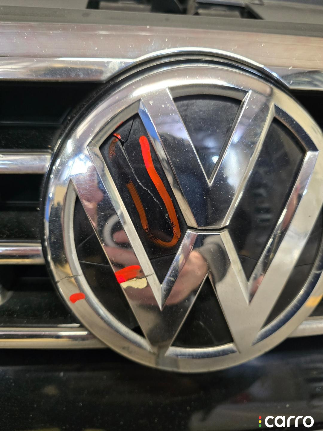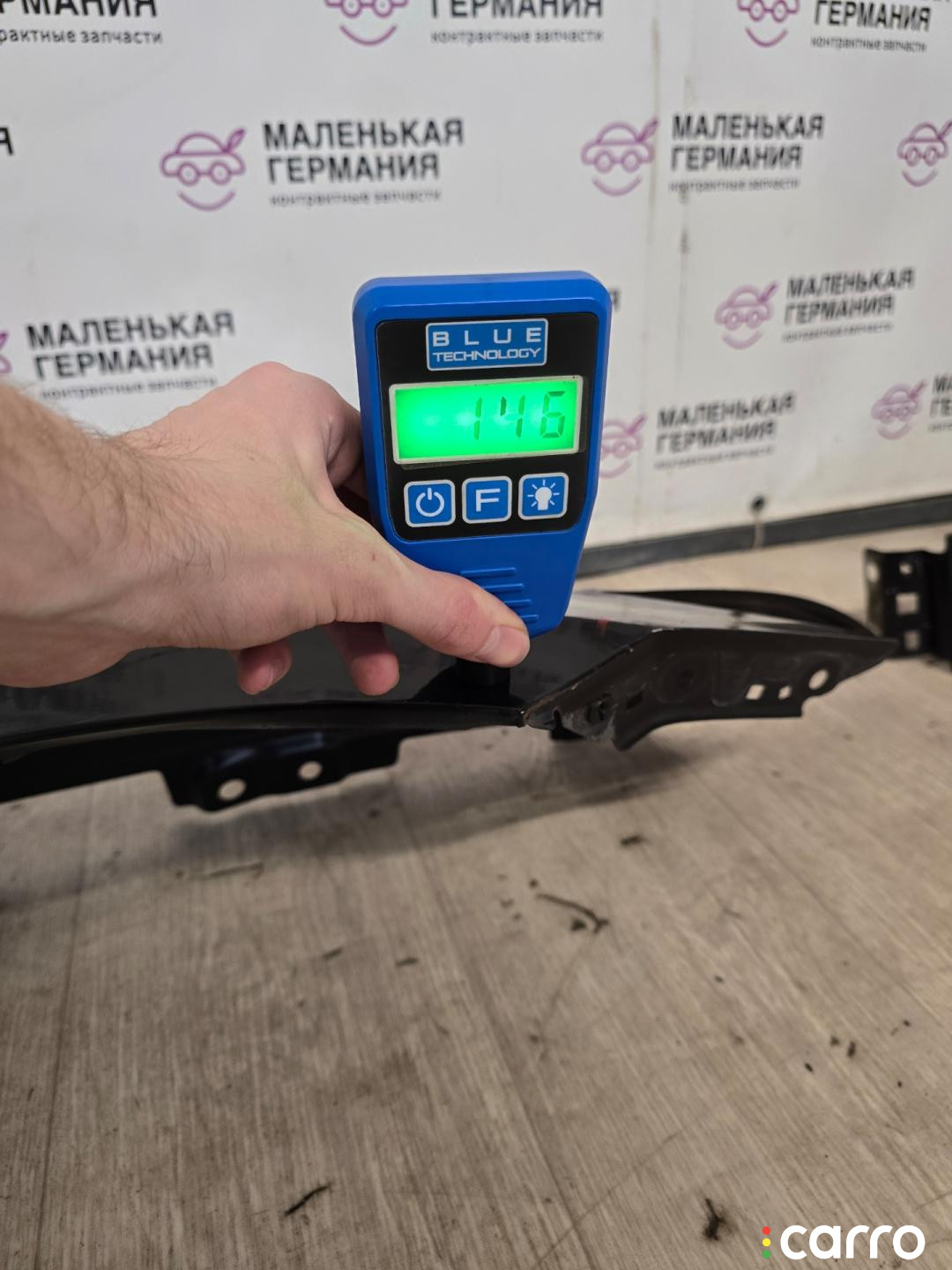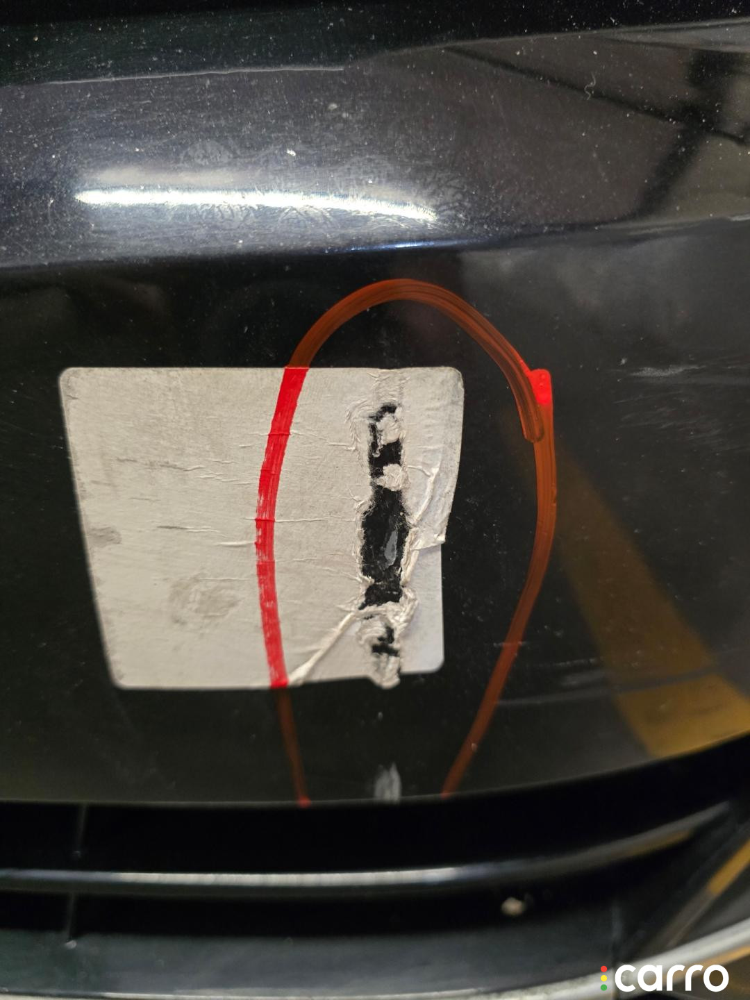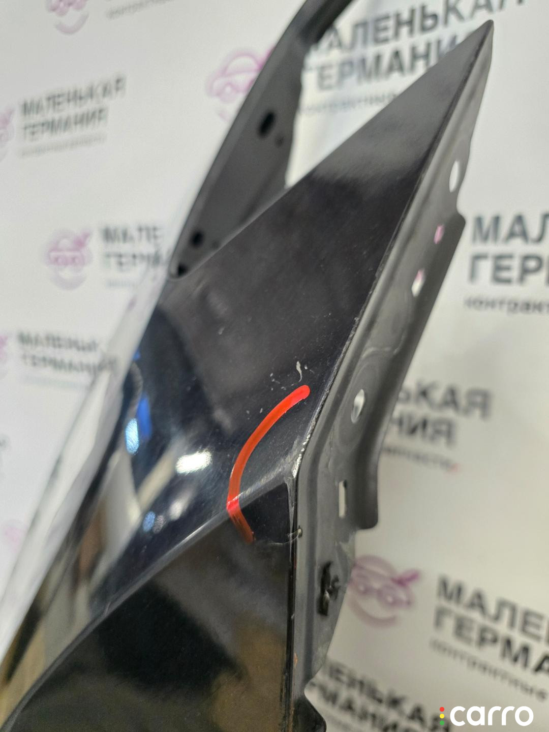 Бампер передний, оригинал. Есть дефект- повреждено крепление решетки радиатора, правое крепление к крылу, эмблема, присутствуют небольшая вмятина, царапины, мелкие сколы.