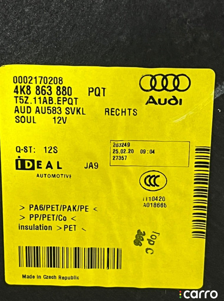 | Ориг. номера | 4K8863880 |