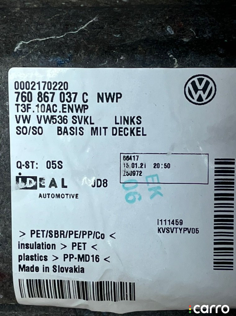 | Ориг. номера | 760867037C |