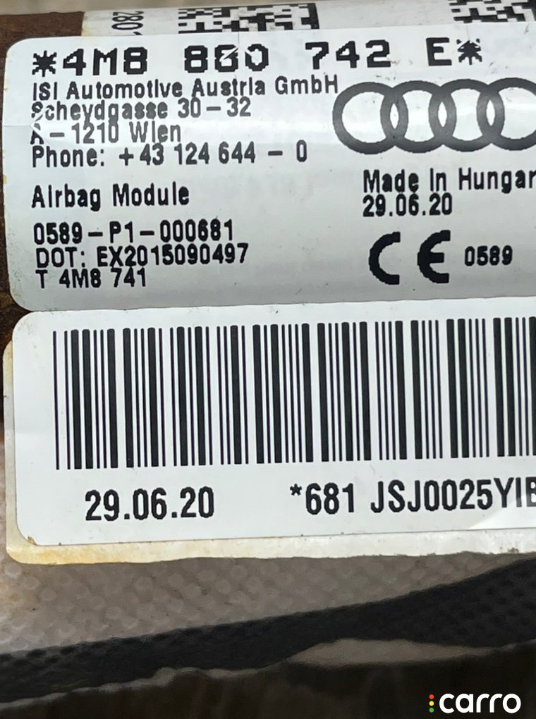 Подушка безопасности боковая AUDI RSQ8 2019-2024 40TFSI, 4M8880742E | 44877