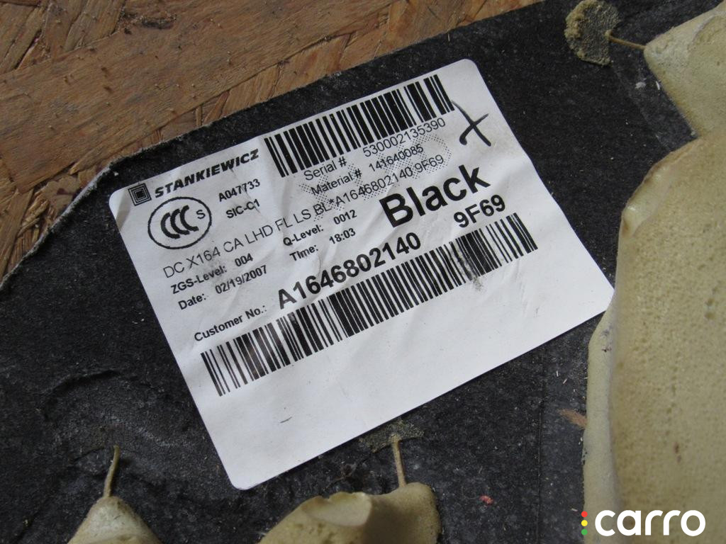 Ковер салонный передний Mercedes-Benz M W164 2005-2008 3.5 л. бензин M272967, 1646802140 | 250620-109