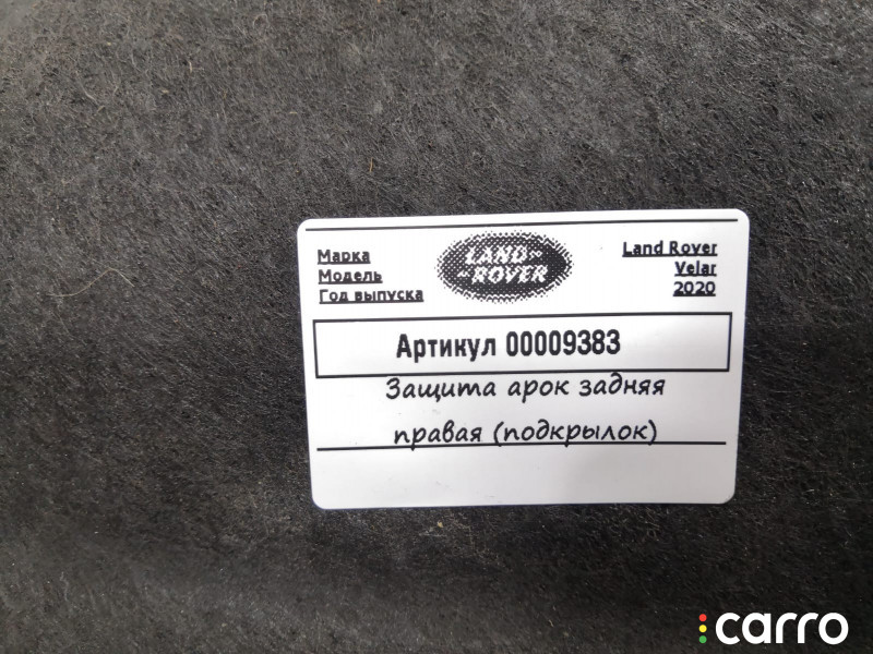 Подкрылок задний правый Land Rover Range Rover Velar 1 поколение 2017-2023 2.0 л. 204DTD | 00009383
