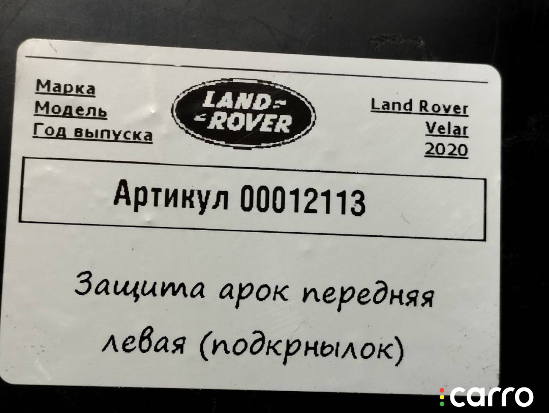 Подкрылок передний левый Land Rover Range Rover Velar 1 поколение 2017-2023 2.0 л., J8A2-16A574-AE | 00012113